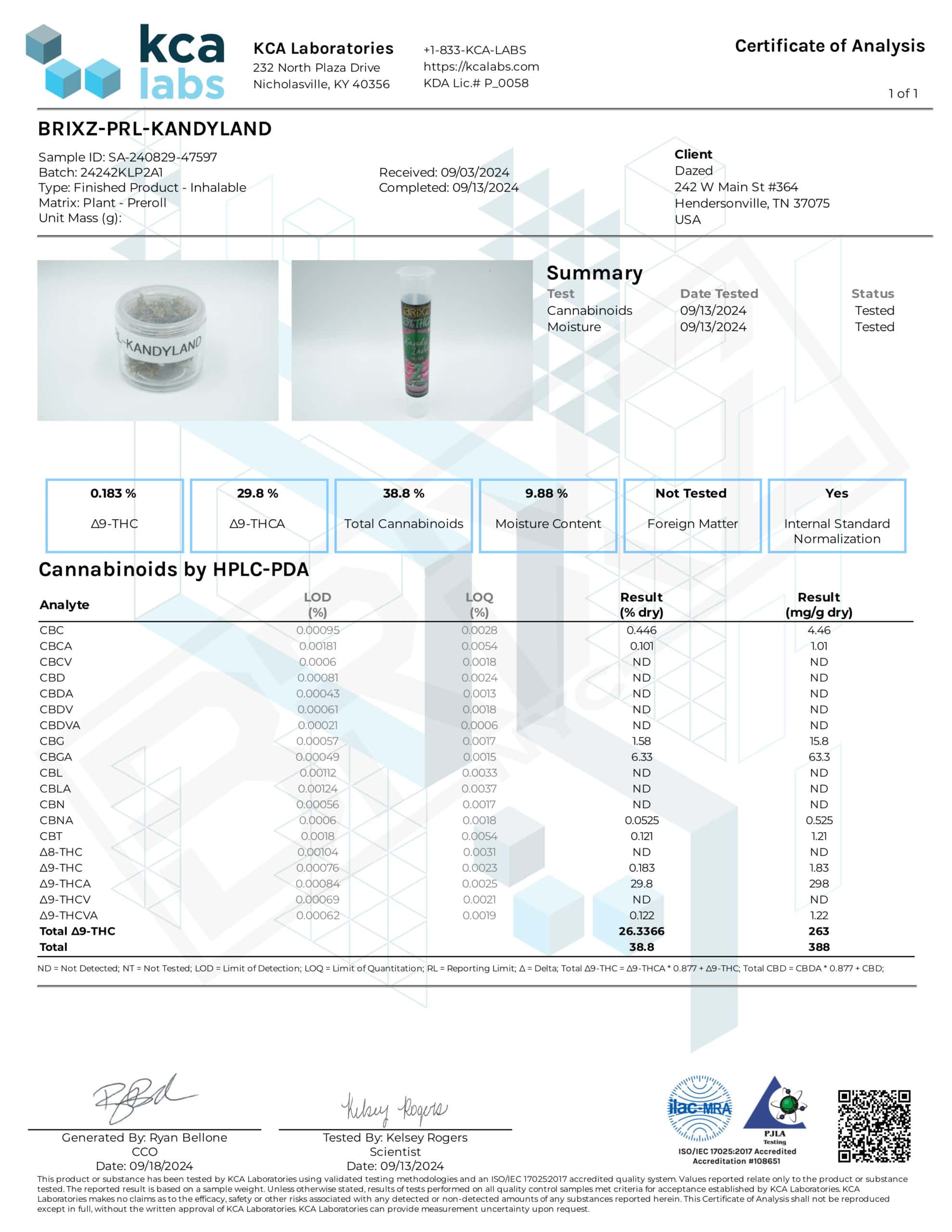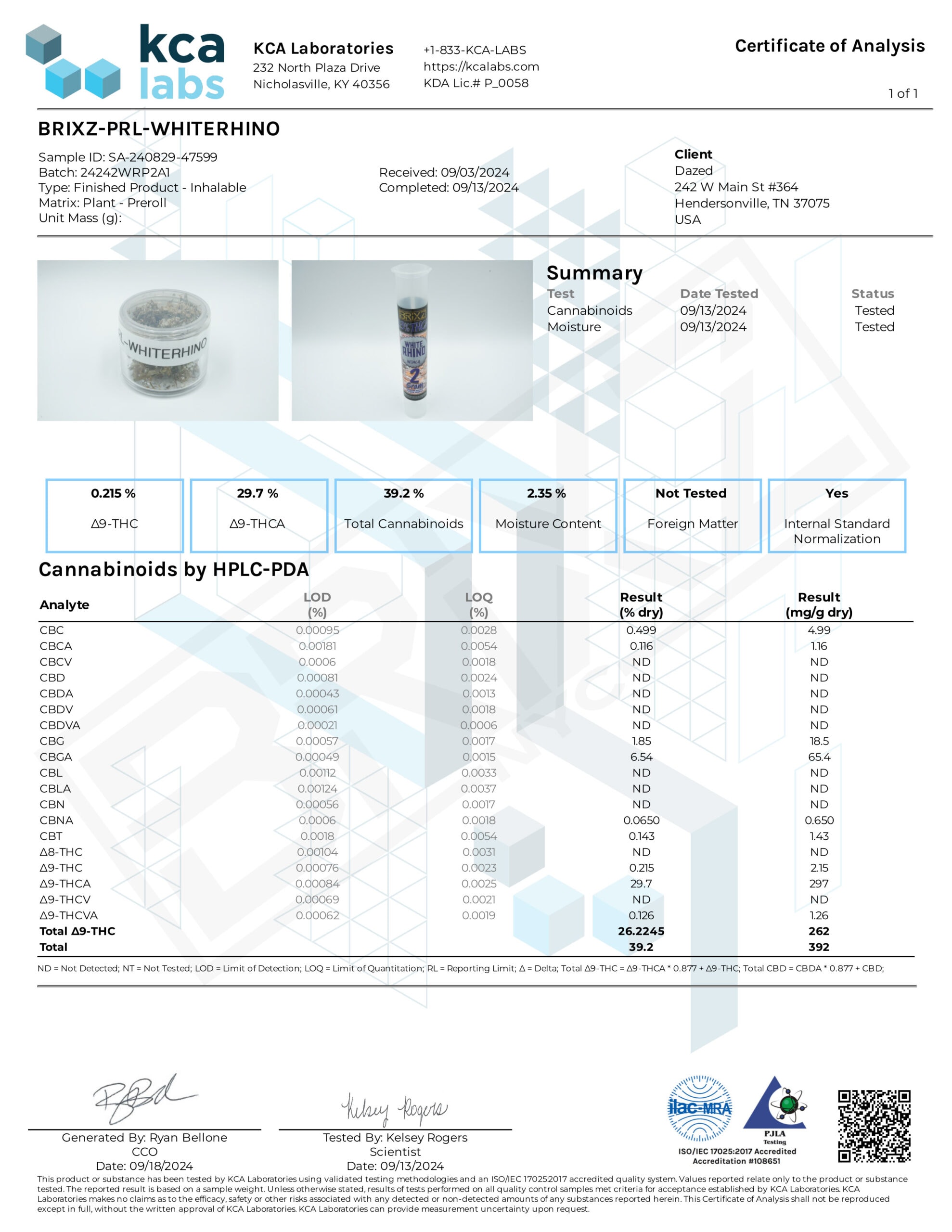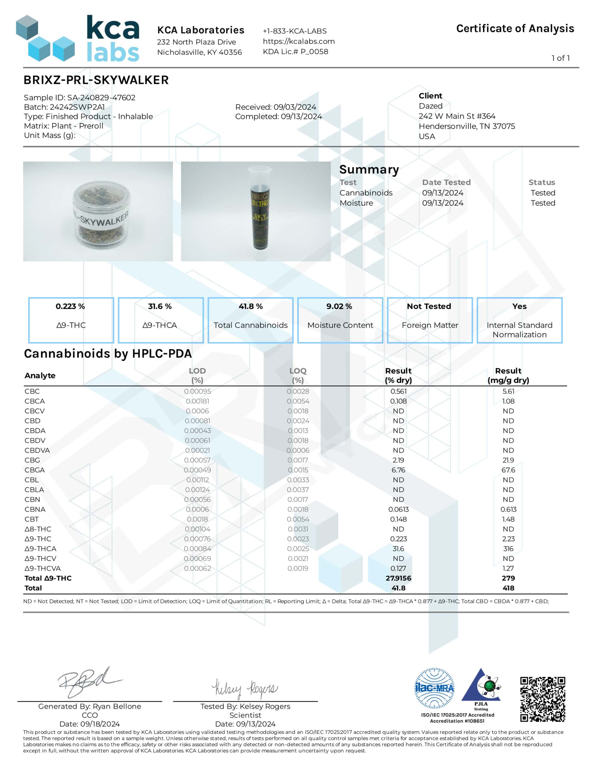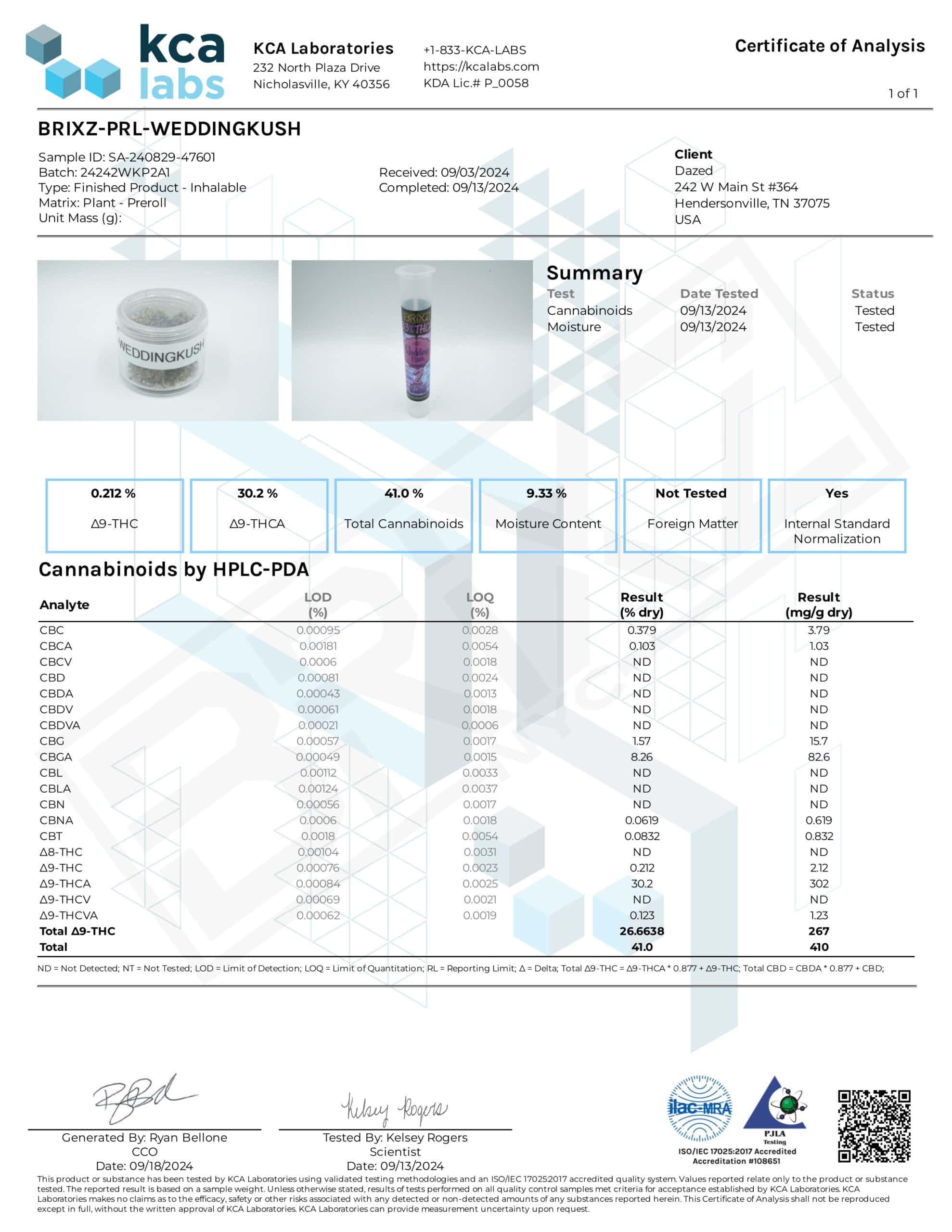 - Cannabinoid Profile: THCA